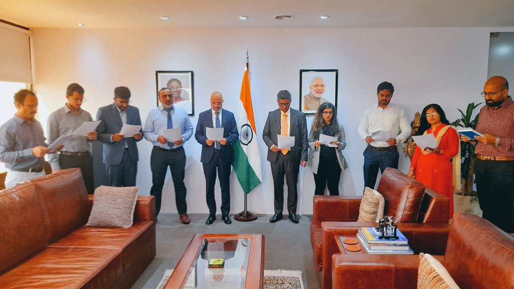 Ambassador Dinesh Bhatia accompanied by Embassy officials recalled the vision of Mahatma Gandhi for a developed India and committed themselves to continue to make efforts towards transforming India through cleanliness.