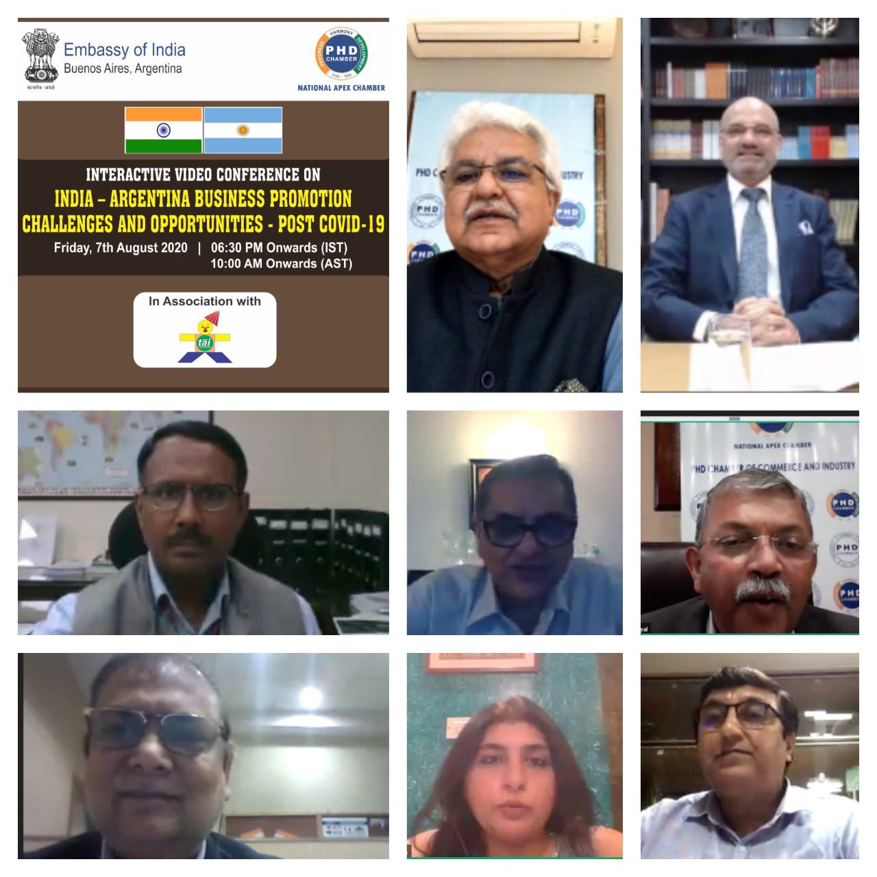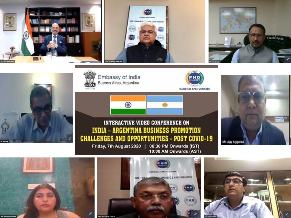 Ambassador Dinesh Bhatia addressed PHD Chamber on post COVID-19 business opportunities between India and Argentina with special focus on SMEs. Several possibilities in hitherto unexplored areas such as Ayurveda, spices, toys, plastics, apparels, handicrafts and agro were discussed.