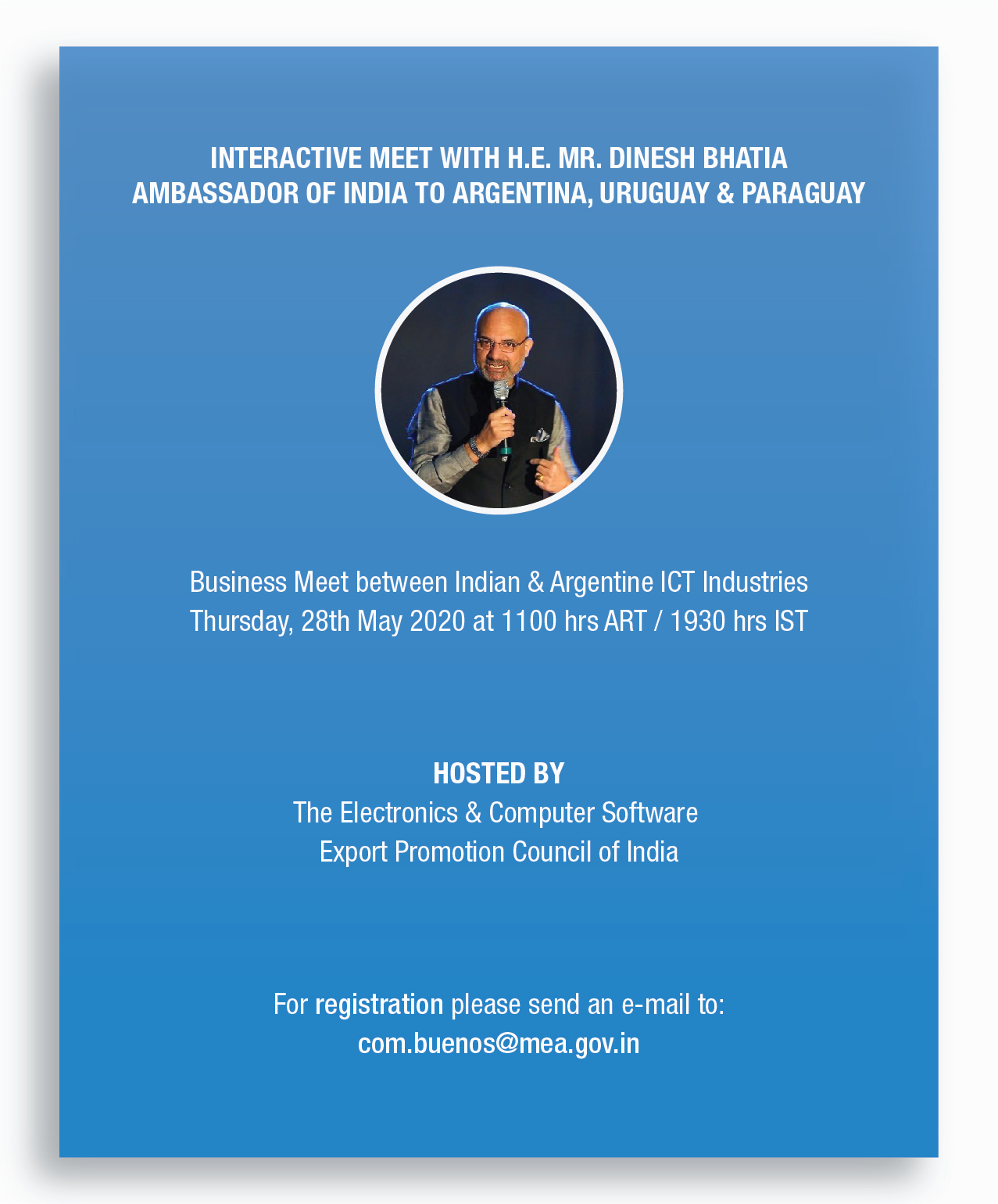 Ambassador Dinesh Bhatia addressed virtual business meet on untapped potential between India and Argentina in ICT sector. 40+ experts and business representatives from Electronics & Software Export Promotion Council, India and Chamber of Software and IT Service Companies, Argentina participated.