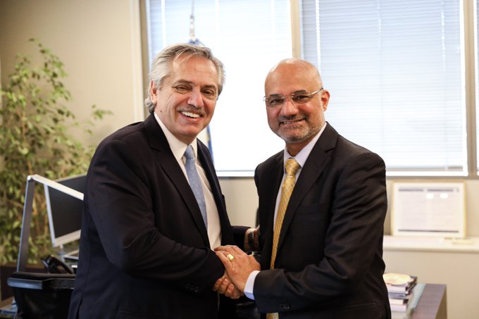 Ambassador Dinesh Bhatia called on President-elect of Argentina Aberto Fernández and presented the congratulatory letter from PM Narendra Modi. They, inter-alia, discussed strengthening the India Argentina Strategic Partnership & enhancing  bilateral economic cooperation.