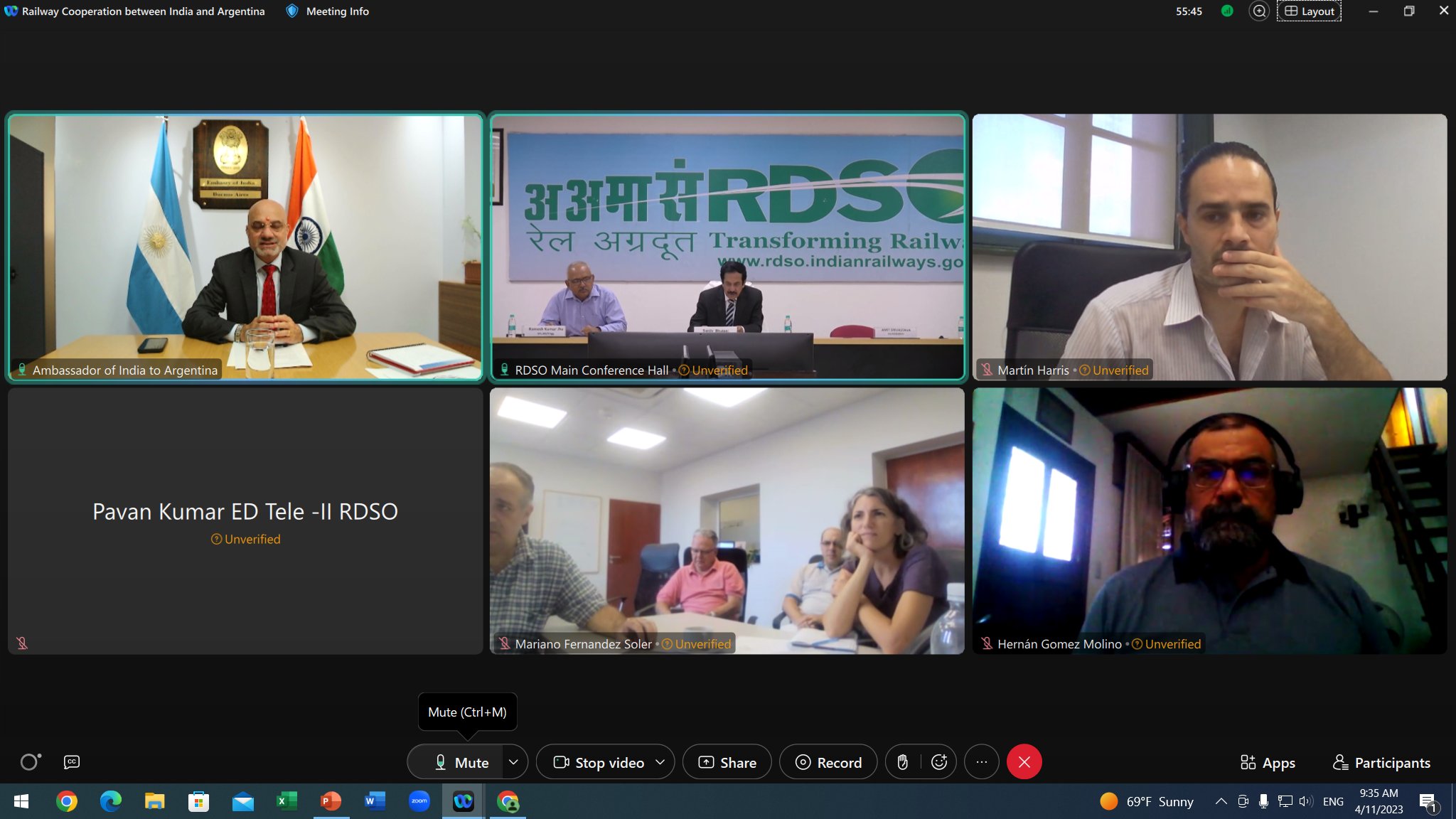 Ambassador Dinesh Bhatia hosted first ever meeting between Sanjiv Bhutani, DGResearch Designs & Standards Organisation (RDSO) bajo el Ministerio de Ferrocarriles ubicado en Lucknow, Uttar Pradesh & Mariano Fernandez Soler of CENADIF en Trenes Argentina