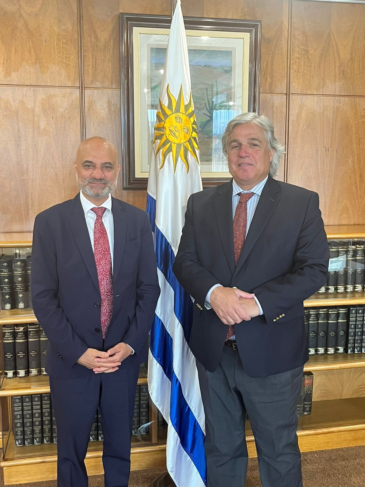 Ambassador Dinesh Bhatia met H.E. Francisco Bustillo, Foreign Minister of Uruguay