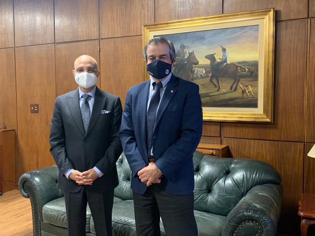 Ambassador Dinesh Bhatia met with Carlos María Uriarte, Uruguayan Minister of Livestock, Agriculture & Fisheries to discuss ongoing cooperation in agricultural trade and to explore commerce in newer areas including marine products between India and Uruguay.