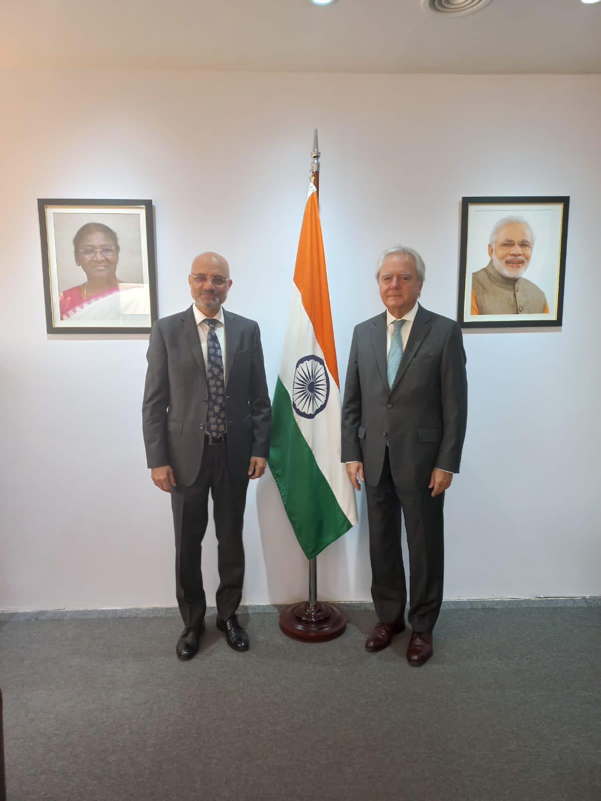 Ambassador Dinesh Bhatia received Federico Pinedo, former Provisional President of Argentine Senate & former Member of Argentine Deputies Chamber, at the Embassy. Both exchanged views on multifaceted bilateral relations between the two Strategic Partners, India & Argentina, and the contemporary multilateralism.