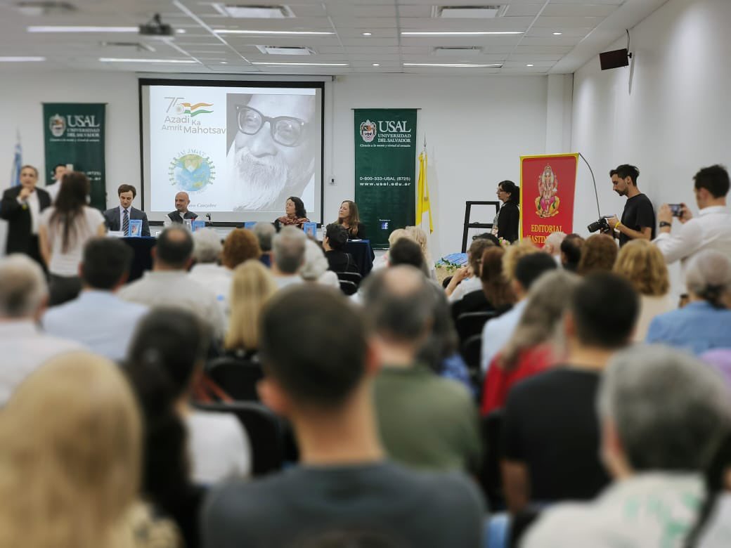 Ambassador Dinesh Bhatia with Hastinapura Foundation and Professors of Yoga & Indian Philosophy at Salvador University launched Spanish translation of "Commentaries On Bhagavad Gita" by Vinoba Bhave. He spoke of concepts of Dharma & Akarma and lauded the translator, the iconic Ada Albretch.