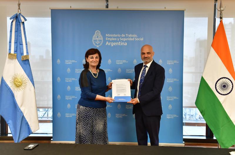 Concluding successful negotiations in record time on draft Social Security Agreement between India & Argentina, Minister Kelly Olmos of Ministerio de Trabajo handed over final agreed draft to Ambassador Dinesh Bhatia to initiate due process on both sides for its formal signing.