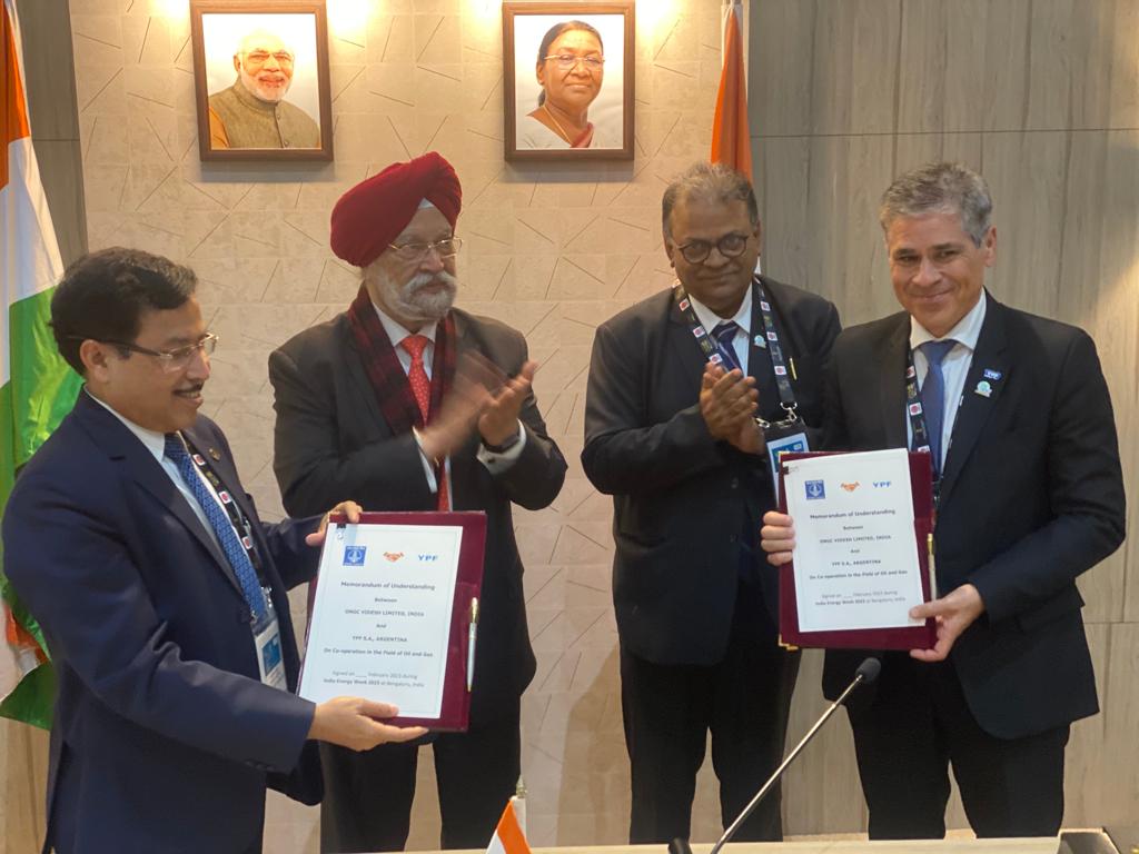 MD ONGC VIDESH Limited, Rajarshi Gupta & President YPF, Pablo González signed an MOU on Cooperation in field of Oil & Gas opening yet another strategic sector between India & Argentina, in gracious presence of Hardeep Singh Puri, Minister of Petroleum & Natural Gas.
