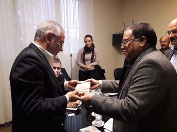 Despite busy agenda, Production Minister Juan Carlos Abud, Secretary Miguel Soler and representatives of mining state company JEMSE met with Member National Institution for Transforming India Dr. Saraswat, Indian delegation and Ambassador Dinesh Bhatia. They analysed various prospects for working together.
