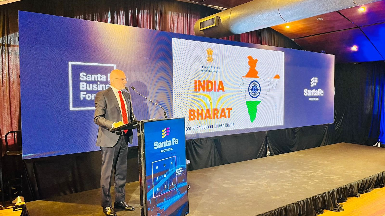 Por invitación de Maximiliano Pullaro, gobernador de Santa Fe, el Embajador Dinesh Bhatia narró la notable historia de crecimiento de la India en el Santa Fe Business Forum y destacó la asociación estratégica India-Argentina, en presencia del ministro Gustavo Puccini.