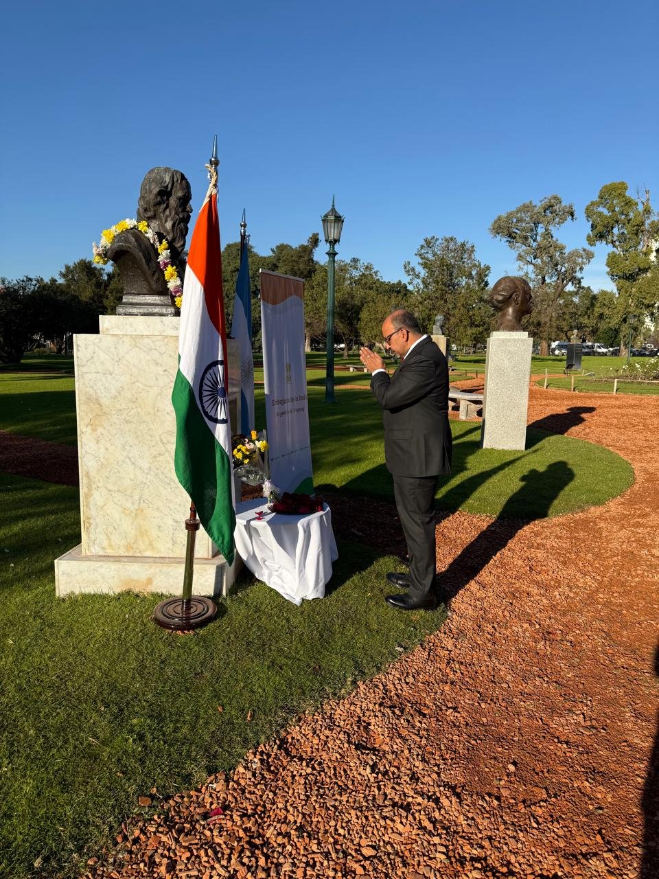 Upon his arrival in Argentina, Mr. Ajaneesh Kumar, Ambassador (Designate) of India to Argentina paid homage to Gurudev Rabindranath Tagore at his bust in Buenos Aires on 02.06.2025