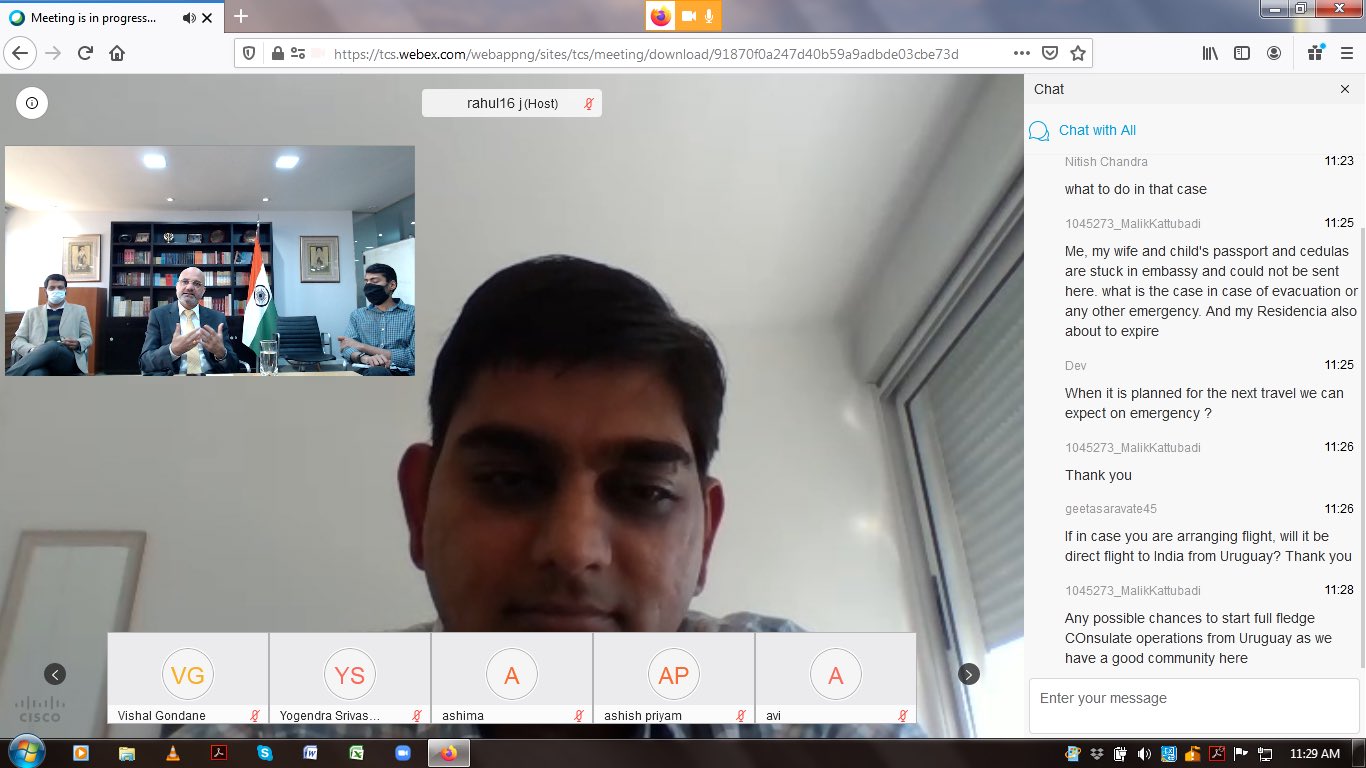 Continuing online interactions, Ambassador Dinesh Bhatia held today video conference with Indian IT professionals working with Tata Consultancy Services Uruguay. He expressed he was glad all of them are safe from COVID-19. Discussed closer coordination, consular services and repatriation and appreciated their efforts to support the Uruguayan Government.